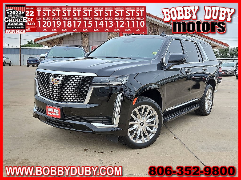 "Voted Best Used Car-Truck Dealer 2011201220132014201520172018201920202021202220232024! **NAVIGATION/ GPS/ NAV** **SUNROOF** **LEATHER** **ACCIDENT FREE CARFAX** **BLUE TOOTH - HANDS FREE* **REMOTE START** **BACKUP CAMERA** **CLEAN CARFAX ~CARFAX 1 Owner~ **KEYLESS ENTRY** **HEATED / COOLED SEATS** **RUNNING BOARDS** $$APPLE CARPLAY$$ Escalade Premium Luxury 6.2L V8 AWD 16.9""Diagonal OLED Infotainment Screen 8-Way Power Front Passenger Seat Adjuster Adaptive Cruise Control AKG Studio 19-Speaker Audio System Alloy wheels Apple CarPlay/Android Auto Automatic Seat Belt Tightening Automatic temperature control Bumpers: body-color Door Lock & Latch Shields Electronic Stability Control Enhanced Automatic Emergency Braking Enhanced Automatic Parking Assist Exterior Parking Camera Rear Four wheel independent suspension Fully automatic headlights Glass Breakage Sensor HD Radio Heads-Up Display Heated & Ventilated Driver & Front Passenger Seats Heated Driver & Front Passenger Seats Lane Change Alert w/Side Blind Zone Alert Mechanical Limited-Slip Differential Memory seat Navigation System Power driver seat Power Liftgate Power Panoramic Tilt-Sliding Sunroof Power windows Preferred Equipment Group 1SB Premium Smooth Ride Suspension Radio: AM/FM w/Navigation Rear air conditioning Rear Camera Mirror Rear Camera Mirror Washer Rear Cross Traffic Alert Rear Seat Entertainment System Rear window defroster Reconfigurable Full-Color Head-Up Display Remote keyless entry Reverse Automatic Braking Running Board Assist Steps Security system SiriusXM w/360L Speed control Steering wheel memory Steering wheel mounted audio controls Teen Driver Theft-Deterrent Alarm System Vehicle Inclination Sensor Vehicle Interior Movement Sensor Ventilated front seats Wheels: 22""14-Spoke Alloy w/Polished Finish Wireless Apple CarPlay/Wireless Android Auto.Voted Best of Amarillo Used Car / Truck Dealer 2011 2012 2013 2014 2015 2017 2018 2019 2020 2021 2022 2023 2024! Huge Thank You to all of our customers that take the time to vote for us! We appreciate each and everyone of you!!!Bobby Duby Motors - Voted Best of Amarillo Used Car/Truck Dealer! 14 Years !"