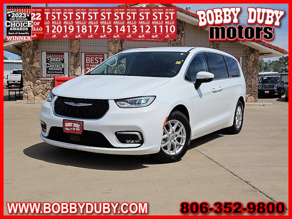 "Recent Arrival!**ACCIDENT FREE CARFAX** **BLUE TOOTH - HANDS FREE* **BACKUP CAMERA** **CLEAN CARFAX ~CARFAX 1 Owner~ **KEYLESS ENTRY** $$APPLE CARPLAY$$ Pacifica Touring L 3.6L V6 24V VVT 10.1""Touchscreen Display 3rd row seats: split-bench 4-Wheel Disc Brakes Alloy wheels AM/FM radio: SiriusXM Apple CarPlay/Android Auto Automatic temperature control Bumpers: body-color Caprice Leatherette Bucket Seats Four wheel independent suspension Fully automatic headlights Google Android Auto Heated front seats Memory seat ParkView Rear Back-Up Camera Power driver seat Power Liftgate Power steering Power windows Quick Order Package 27L Radio: Uconnect 5 w/10.1""Display Rear air conditioning Rear window defroster Remote keyless entry Security system Speed control Steering wheel mounted audio controls Traction control.Voted Best of Amarillo Used Car / Truck Dealer 2011 2012 2013 2014 2015 2017 2018 2019 2020 2021 2022 2023 2024! Huge Thank You to all of our customers that take the time to vote for us! We appreciate each and everyone of you!!!Bobby Duby Motors - Voted Best of Amarillo Used Car/Truck Dealer! 14 Years !"