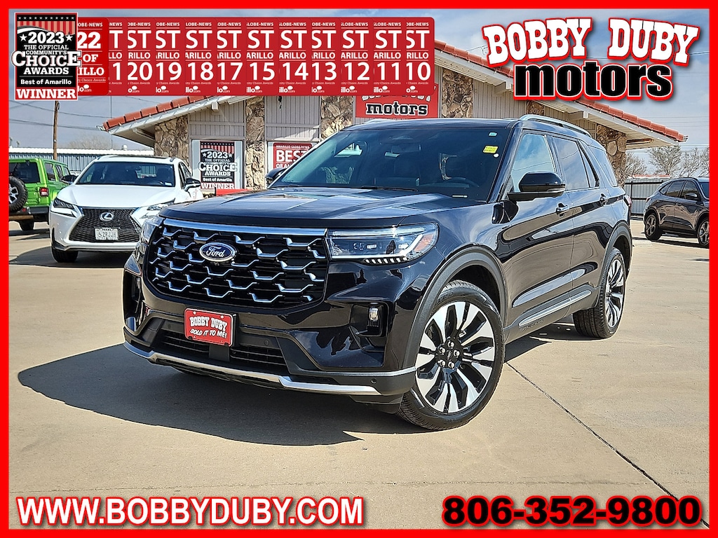 "Recent Arrival!**NAVIGATION/ GPS/ NAV** **SUNROOF** **LEATHER** **ACCIDENT FREE CARFAX** **BLUE TOOTH - HANDS FREE* **BACKUP CAMERA** **CLEAN CARFAX ~CARFAX 1 Owner~ **KEYLESS ENTRY** **HEATED / COOLED SEATS** **SECOND ROW CAPTAINS CHAIRS** $$APPLE CARPLAY$$ **Panoramic Sunroof** Explorer Platinum 2.3L EcoBoost I-4 4WD Mojave Dusk/Onyx w/Leather Seating Surfaces Sport Captain Chairs 3rd row seats: bench 4-Wheel Disc Brakes ABS brakes Alloy wheels Apple CarPlay/Android Auto Automatic temperature control Bumpers: body-color Electronic Stability Control Equipment Group 600A Standard Package Exterior Parking Camera Rear Four wheel independent suspension Front Bucket Seats Front Center Armrest Fully automatic headlights Heated front seats Heated rear seats Leather Seating Surfaces Sport Captain Chairs Lux Leather Package Navigation System Panic alarm Platinum Badges on Front Row Seats Power driver seat Power Liftgate Power moonroof Power steering Power windows Quilting & Stitching on Door Panels Quilting & Stitching on Seats Radio: B&O Sound System by Bang & Olufsen w/HD Rear air conditioning Rear window defroster Remote keyless entry Security system Speed-sensing steering Split folding rear seat Steering wheel mounted audio controls Tilt steering wheel Ventilated front seats Wheels: 21""Bright Machined Alum w/Tarnish Dk Pkts.Voted Best of Amarillo Used Car / Truck Dealer 2011 2012 2013 2014 2015 2017 2018 2019 2020 2021 2022 2023 2024! Huge Thank You to all of our customers that take the time to vote for us! We appreciate each and everyone of you!!!Bobby Duby Motors - Voted Best of Amarillo Used Car/Truck Dealer! 14 Years !"