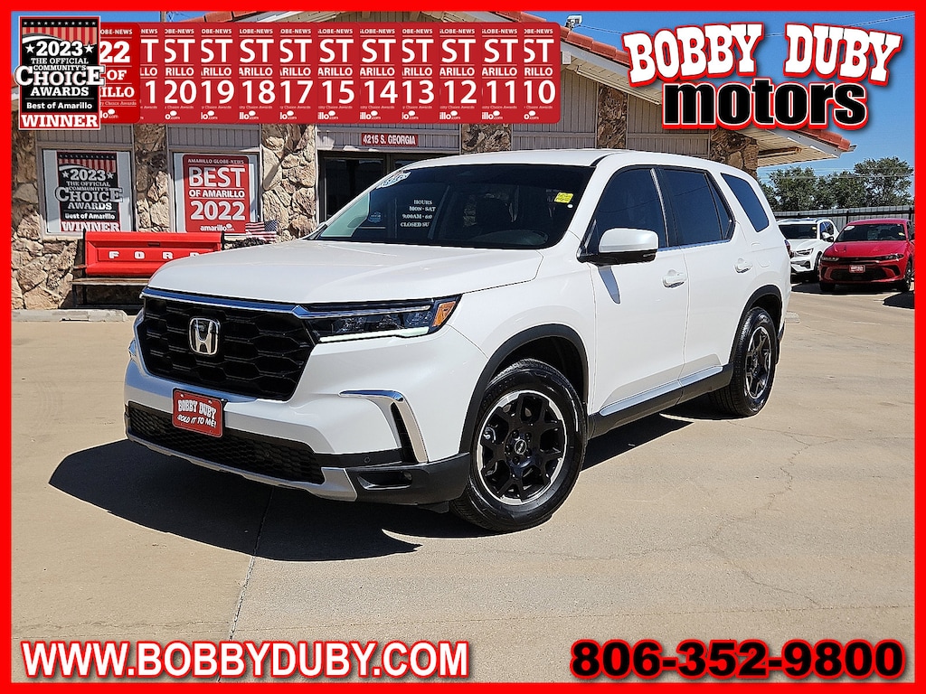 "Voted Best Used Car-Truck Dealer 2011201220132014201520172018201920202021202220232024! **LEATHER** **ACCIDENT FREE CARFAX** **REMOTE START** **BACKUP CAMERA** **CLEAN CARFAX ~CARFAX 1 Owner~ **KEYLESS ENTRY** HPD Wheels EX-L+ Pilot EX-L+ 3.5L V6 DOHC 24V 3rd row seats: split-bench 4-Wheel Disc Brakes 4.167 Axle Ratio ABS brakes Adaptive Cruise Control: Adaptive Cruise Control (ACC) with Low-Speed Follow AM/FM radio: SiriusXM Apple CarPlay/Android Auto Automatic temperature control Blind Spot Information (BSI) System warning Brake assist Bumpers: body-color Electronic Stability Control Emergency communication system: HondaLink Assist Exterior Parking Camera Rear Four wheel independent suspension Front Bucket Seats Front Center Armrest Fully automatic headlights Heated Front Bucket Seats Heated front seats Lane departure: Lane Keeping Assist System (LKAS) active Leather Seat Trim Memory seat Power driver seat Power Liftgate Power passenger seat Power steering Power windows Rear air conditioning Rear window defroster Rear window wiper Reclining 3rd row seat Remote keyless entry Security system Speed control Speed-sensing steering Steering wheel mounted audio controls Tilt steering wheel Traction control Wheels: 18""Black Alloy w/HPD Center Cap.Odometer is 1895 miles below market average!Voted Best of Amarillo Used Car / Truck Dealer 2011 2012 2013 2014 2015 2017 2018 2019 2020 2021 2022 2023 2024! Huge Thank You to all of our customers that take the time to vote for us! We appreciate each and everyone of you!!!Bobby Duby Motors - Voted Best of Amarillo Used Car/Truck Dealer! 14 Years !"