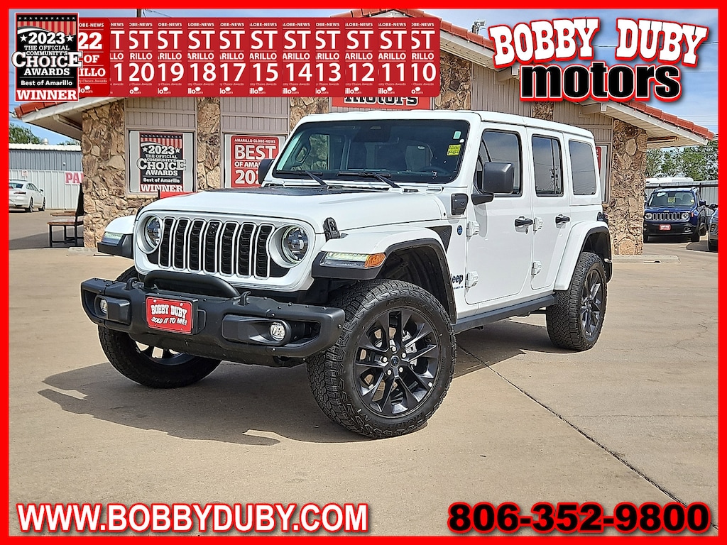 "Recent Arrival!Voted Best Used Car-Truck Dealer 2011201220132014201520172018201920202021202220232024! **NAVIGATION/ GPS/ NAV** **ACCIDENT FREE CARFAX** **BLUE TOOTH - HANDS FREE* **REMOTE START** **BACKUP CAMERA** **CLEAN CARFAX ~CARFAX 1 Owner~ **KEYLESS ENTRY** $$APPLE CARPLAY$$ BACKCOUNTRY Wrangler Sahara 4xe 2.0L I4 DOHC 4WD 110 mph Vehicle Max Speed Calibration 12.3""Touchscreen Display 4-Wheel Disc Brakes 4G LTE Wi-Fi Hot Spot 7 & 4 Pin Wiring Harness 700 Amp Maintenance Free Battery-CP ABS brakes Alpine Premium Audio System Apple CarPlay Auto-Dimming Rear-View Mirror Automatic temperature control Auxiliary Switches Backcountry Buzz Model Backcountry Center Hood Decal Backcountry Fender Decal Backcountry Swing Gate Decal Body Color 3-Piece Hard Top Body Color Rubicon Highline Flare Class II Receiver Hitch Cloth Low-Back Bucket Seats Connected Travel & Traffic Services Connectivity - US/Canada Freedom Panel Storage Bag Front Bucket Seats Front Center Armrest w/Storage Fully automatic headlights Google Android Auto GPS Navigation HD Radio Heated front seats Integrated Center Stack Radio Integrated Off-Road Camera Integrated Voice Command w/Bluetooth MOPAR All-Weather Floor Mats MOPAR Single Hoop Grille Guard Navigation System ParkView Rear Back-Up Camera Power windows Quick Order Package 29Q Backcountry 4xe Radio: Uconnect 5 Nav w/12.3""Display Rear Window Defroster Rear Window Wiper/Washer Remote keyless entry SiriusXM Radio Service SiriusXM w/360L Sport Suspension Steel Front Bumper Steel Rear Bumper Steering wheel mounted audio controls Technology Group Tilt steering wheel Trailer Tow & Aux Switch Group Wheels: 20""x 8""Painted Aluminum.Voted Best of Amarillo Used Car / Truck Dealer 2011 2012 2013 2014 2015 2017 2018 2019 2020 2021 2022 2023 2024! Huge Thank You to all of our customers that take the time to vote for us! We appreciate each and everyone of you!!!Bobby Duby Motors - Voted Best of Amarillo Used Car/Truck Dealer! 14 Years !"