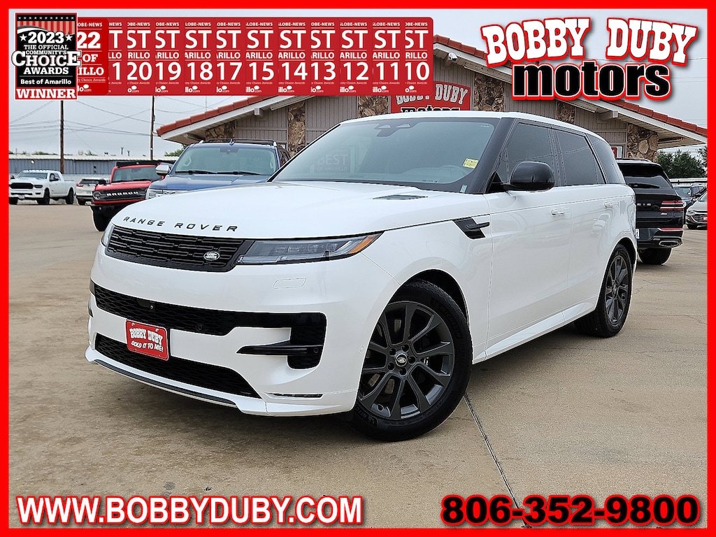 "Voted Best Used Car-Truck Dealer 2011201220132014201520172018201920202021202220232024! **NAVIGATION/ GPS/ NAV** **SUNROOF** **LEATHER** **ACCIDENT FREE CARFAX** **BLUE TOOTH - HANDS FREE* **BACKUP CAMERA** **CLEAN CARFAX ~CARFAX 1 Owner~ **KEYLESS ENTRY** $$APPLE CARPLAY$$ Range Rover Sport Dynamic 3.0L I6 4WD Ostuni Pearl White Metallic 20-Way Elec Heated & Ventilated Fr Seats w/Memory 4-Wheel Disc Brakes ABS brakes Adaptive suspension Alloy wheels AM/FM radio: SiriusXM Apple CarPlay & Android Auto Auto-leveling suspension Automatic temperature control Bumpers: body-color Cold Climate Pack Exterior Parking Camera Rear Four wheel independent suspension Front Bucket Seats Front Center Armrest w/Storage Fully automatic headlights Heated front seats Heated Washer Jets Heated Windscreen Memory seat Navigation system: InControl Navigation Pro Park Assist Perforated Windsor Leather Seat Trim Pixel LED Headlights w/Signature DRL Power driver seat Power Liftgate Power moonroof Power steering Power windows Radio: Meridian Sound System Rear window defroster Remote keyless entry Security system Speed control Speed-sensing steering Split folding rear seat Steering wheel memory Steering wheel mounted audio controls Tilt steering wheel Ventilated front seats Wheels: 21""Satin Dark Grey (Style 5126).Odometer is 1834 miles below market average!Voted Best of Amarillo Used Car / Truck Dealer 2011 2012 2013 2014 2015 2017 2018 2019 2020 2021 2022 2023 2024! Huge Thank You to all of our customers that take the time to vote for us! We appreciate each and everyone of you!!!Bobby Duby Motors - Voted Best of Amarillo Used Car/Truck Dealer! 14 Years !"